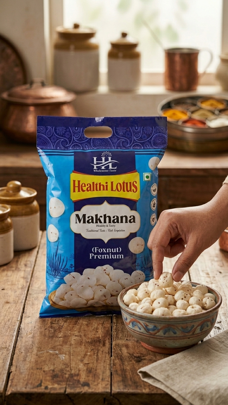 Rich in protein, fiber, and antioxidants, makhana is a low-calorie snack that supports a balanced and healthy lifestyle.