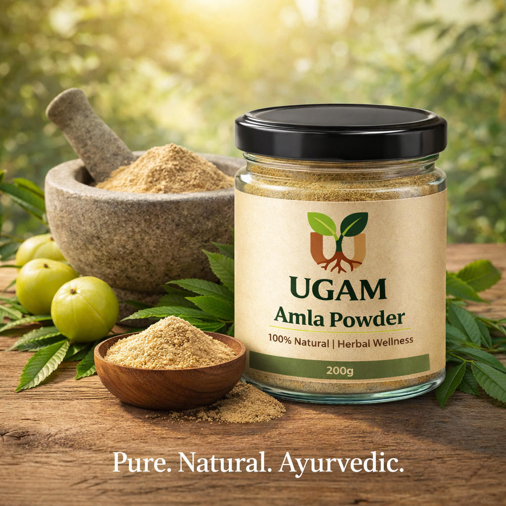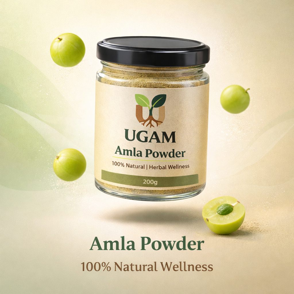 UGAM Amla Powder is a pure and natural herbal supplement made from high-quality dried amla (Indian gooseberry). Rich in Vitamin C and antioxidants, it helps support immunity, improve digestion, and promote overall wellness.